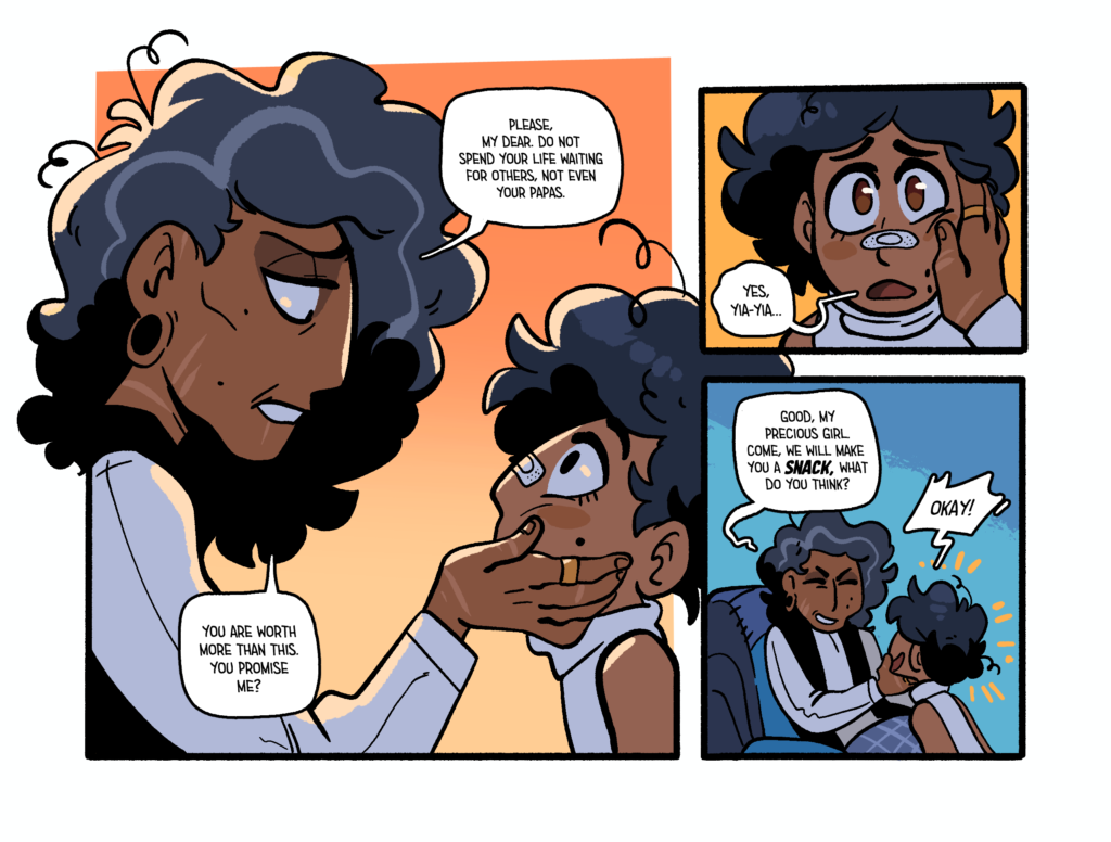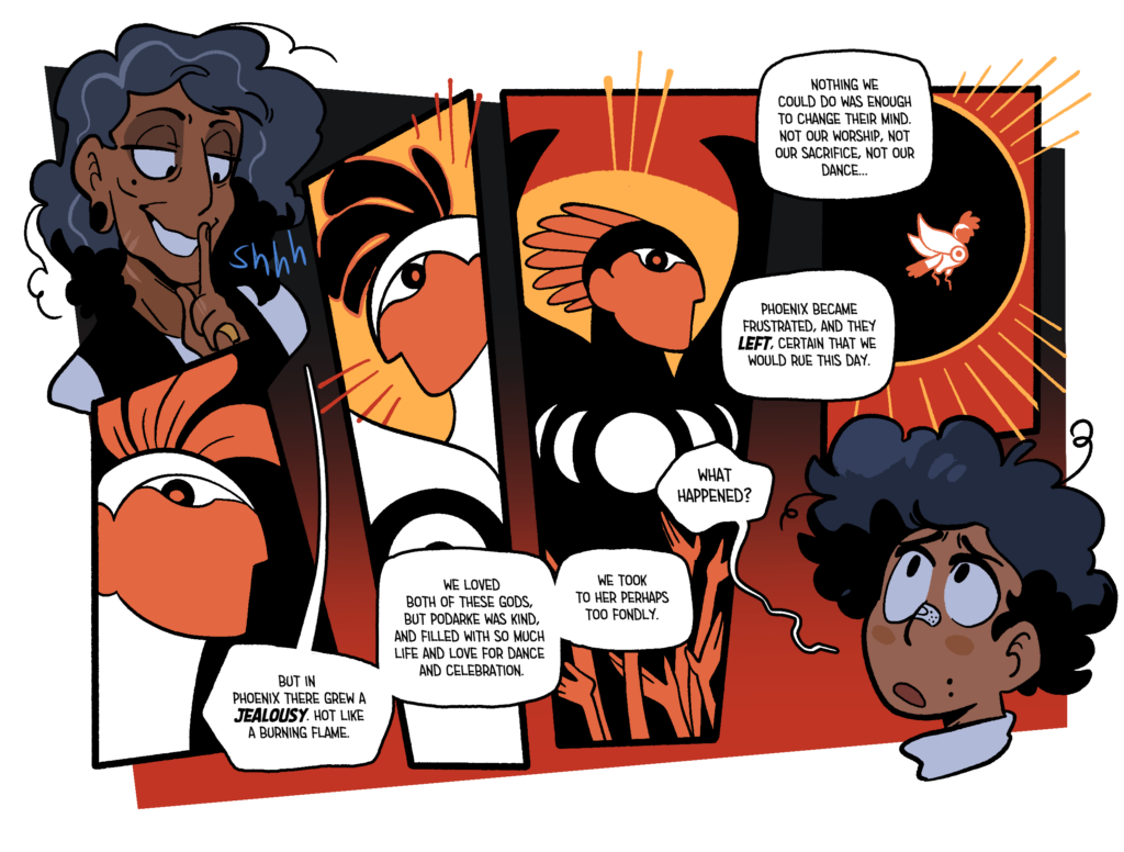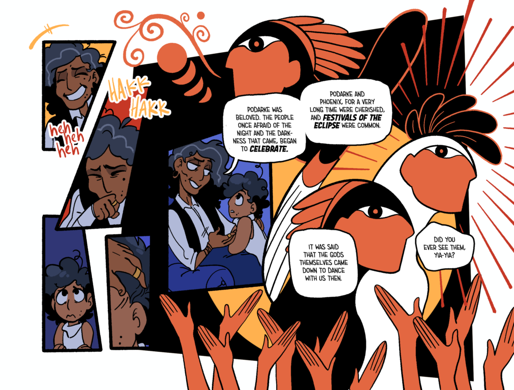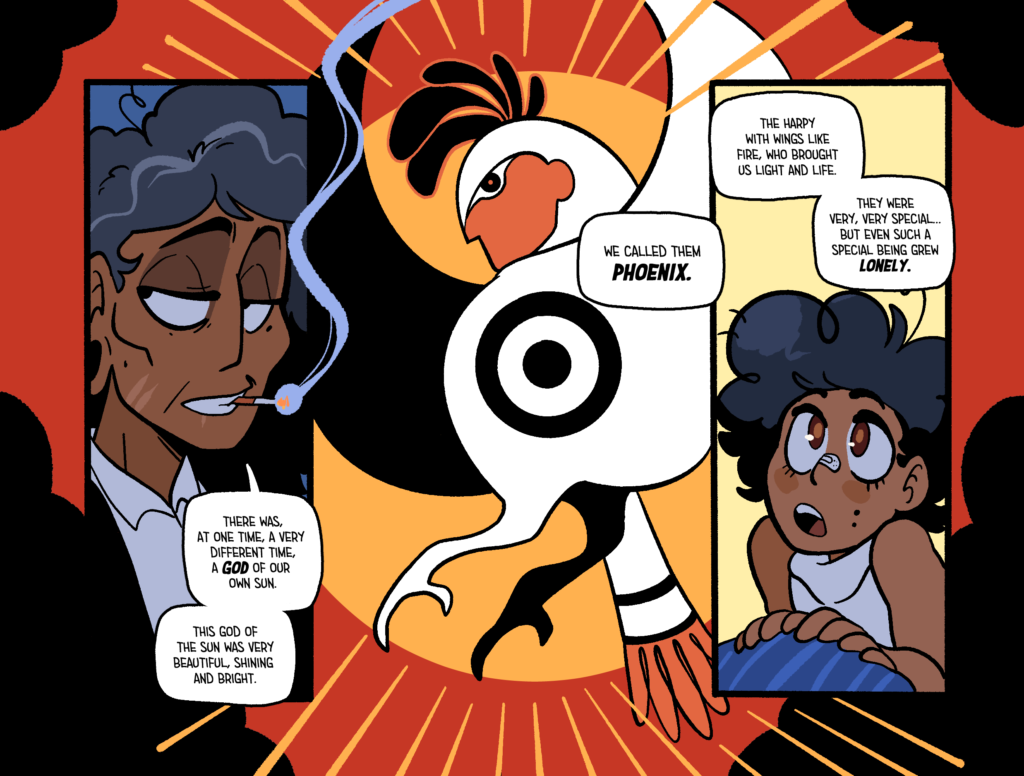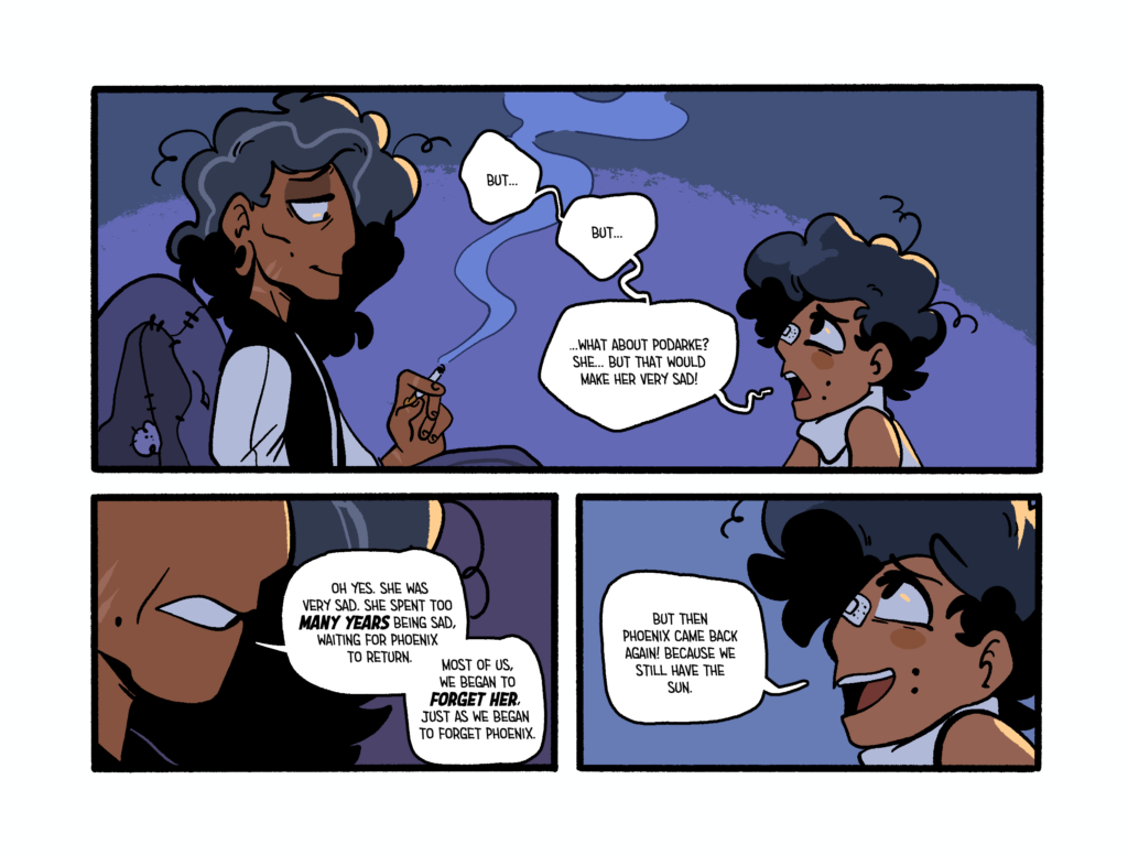 Most of my personal work on Augustine is hard to really split from Tas’. I’m responsible for brainstorming the story (a shared task with my partner), writing the physical script, thumbnailing the panel layouts, inking and the final formatting on the books. So if you want to check all of that out I’d follow one of these, here links to get even more info on this thing~