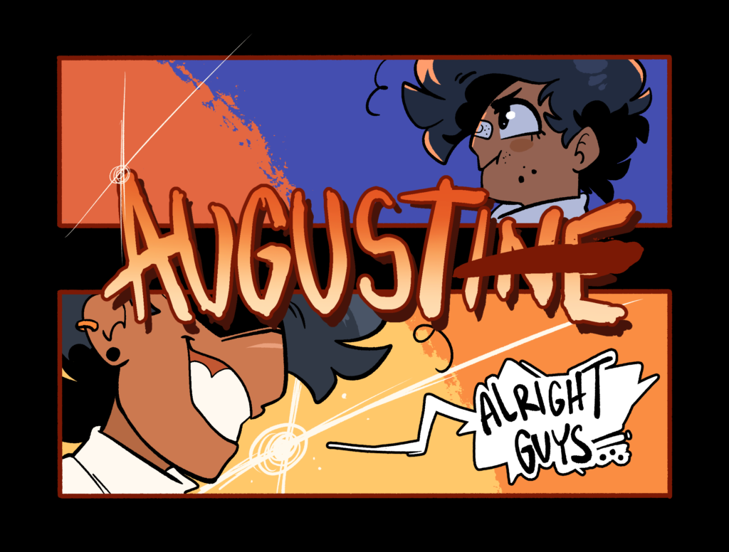 | TITLE: AUGUSTINE GENRE: FANTASY MEDIUM: WEBCOMIC STATUS: ONGOING | YA | SWEARING | ALCOHOL | CARTOON VIOLENCE |